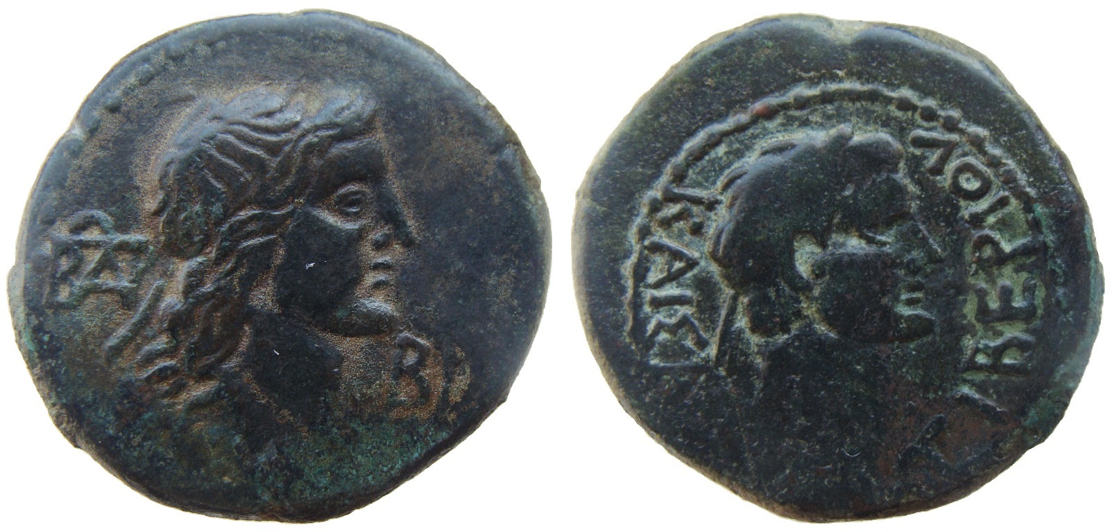 - ΚΑΙΣΑΡΟΣ ΤΙΒΕΡΙΟΥ. Голова Тиберия вправо