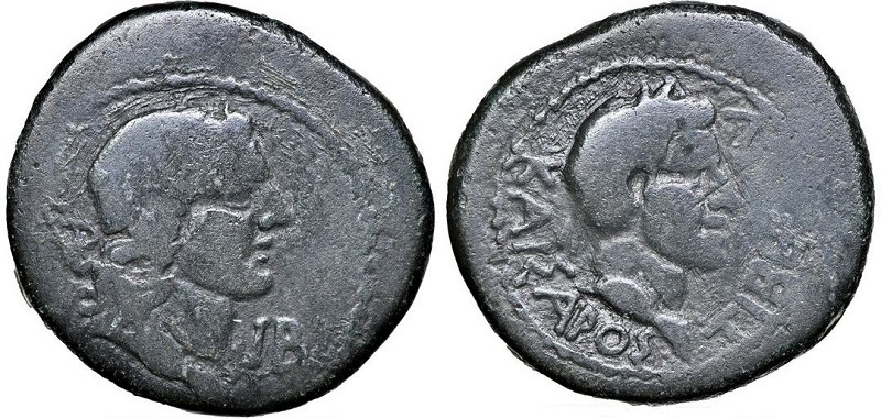 - Голова Аспурга вправо, слева монограмма ΒΑΡ, справа ΙΒ