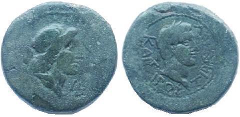 - Голова Аспурга вправо, слева монограмма ΒΑΡ, справа ΙΒ