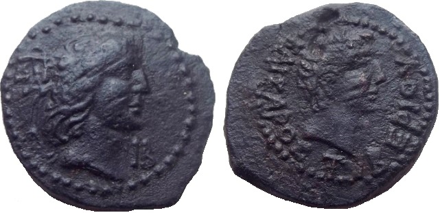 - ΚΑΙΣΑΡΟΣ ΤΙΒΕΡΙΟΥ. Голова Тиберия вправо