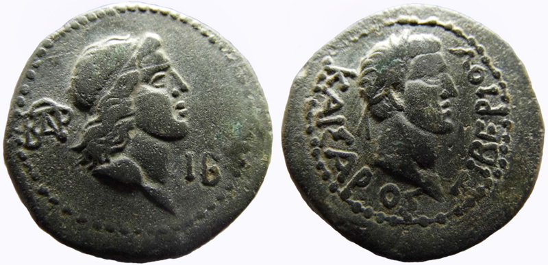 - ΚΑΙΣΑΡΟΣ ΤΙΒΕΡΙΟΥ. Голова Тиберия вправо