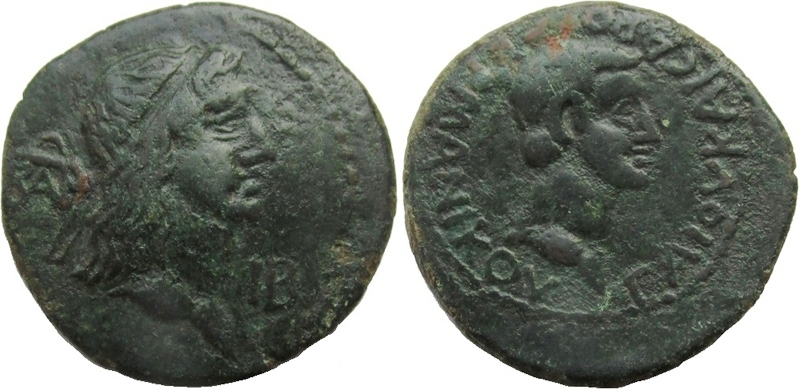- Голова Аспурга вправо, слева монограмма ΒΑΡ, справа ΙΒ