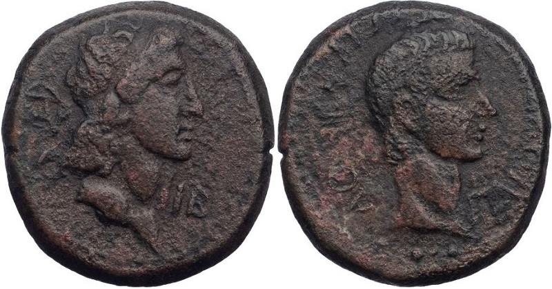 - Голова Аспурга вправо, слева монограмма ΒΑΡ, справа ΙΒ