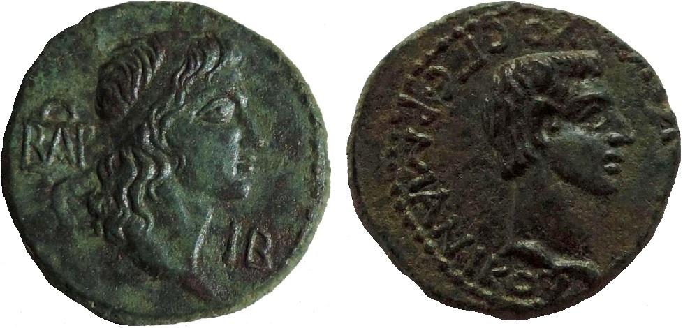 - Голова Аспурга вправо, слева монограмма ΒΑΡ, справа ΙΒ