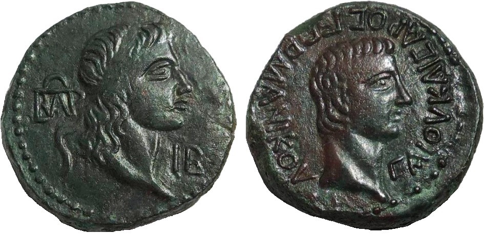 - Голова Аспурга вправо, слева монограмма ΒΑΡ, справа ΙΒ