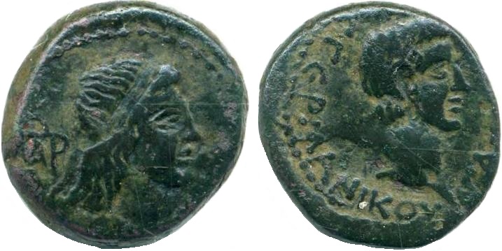 - Голова Аспурга вправо, слева монограмма ΒΑΡ, справа ΙΒ
