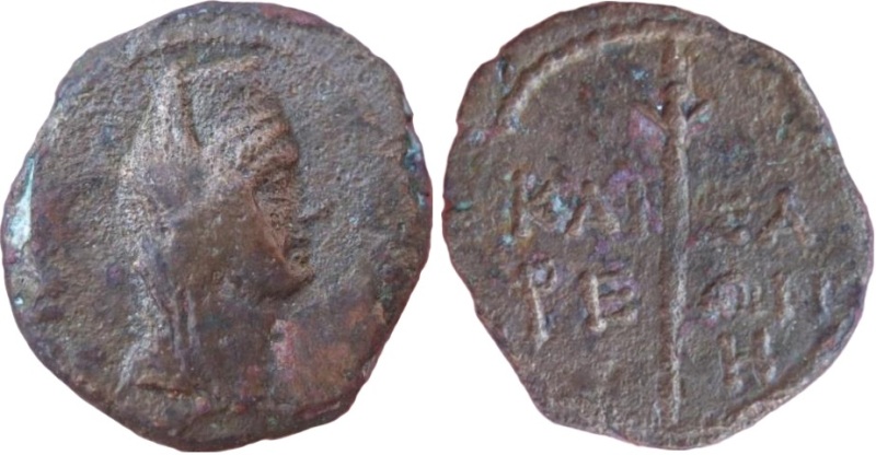 - Факел, по сторонам надпись ΚΑΙ-ΣΑ-ΡΕ-ΩΝ, справа Η