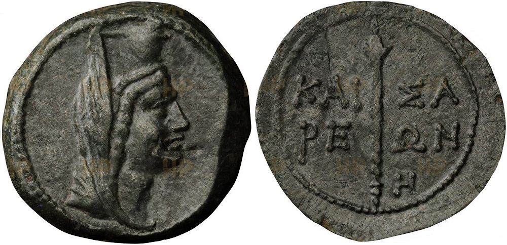 - Факел, по сторонам надпись ΚΑΙ-ΣΑ-ΡΕ-ΩΝ, справа Η