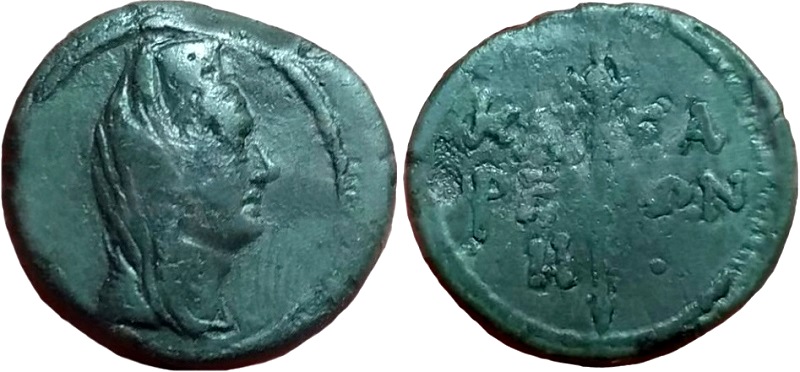Факел, по сторонам надпись ΚΑΙ-ΣΑ-ΡΕ-ΩΝ, слева и справа по точке, слева Η