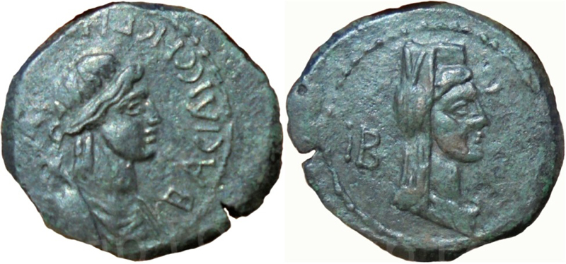 - Женская голова в калафе и покрывале вправо, ΙΒ