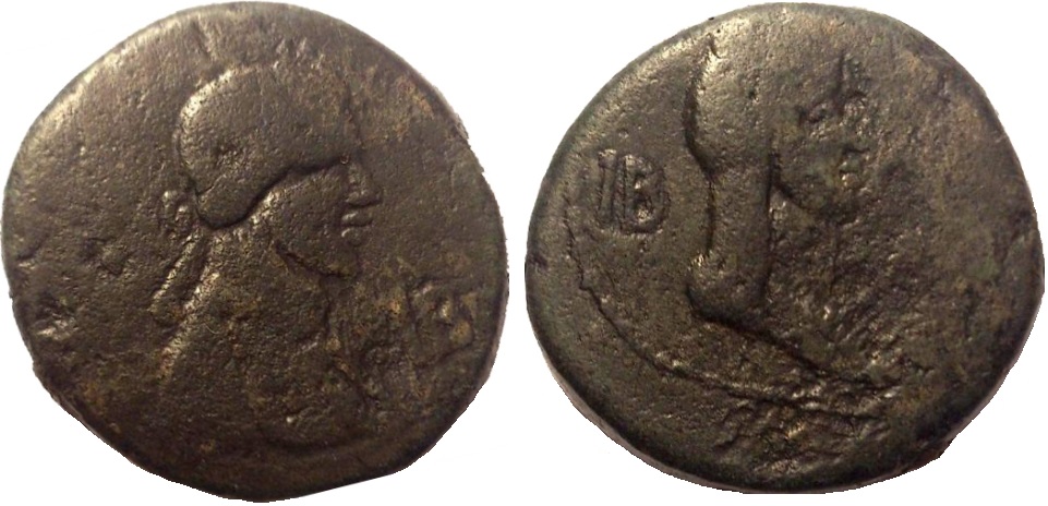 - Женская голова в калафе и покрывале вправо, ΙΒ