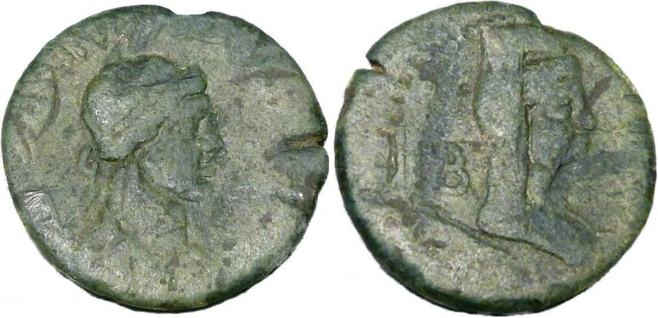 - Женская голова в калафе и покрывале вправо, ΙΒ