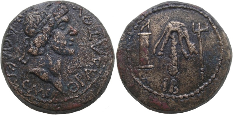 - Палица с наброшенной на нее шкура льва, слева лук и колчан, справа трезубец, внизу ΙΒ