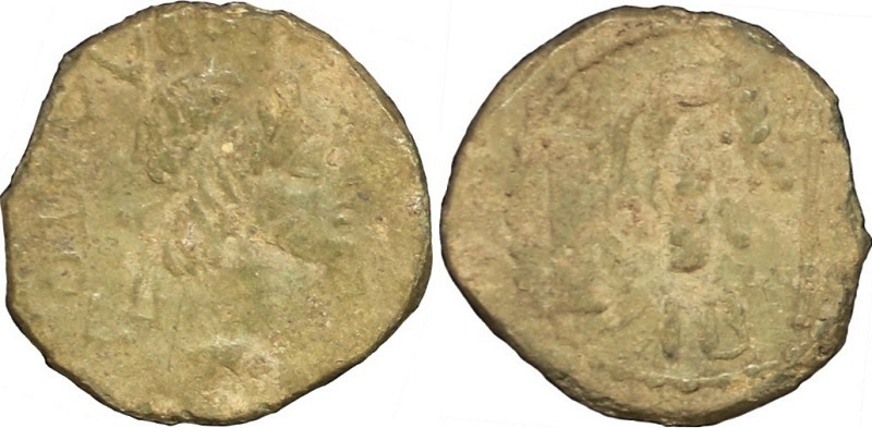 - Палица с наброшенной на нее шкура льва, слева лук и колчан, справа трезубец, внизу ΙΒ