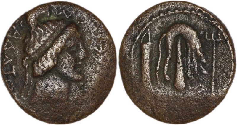- ΒΑCΙΛΕΩC ΜΙΘΡАΔΑΤΟΥ. Голова Митридата вправо