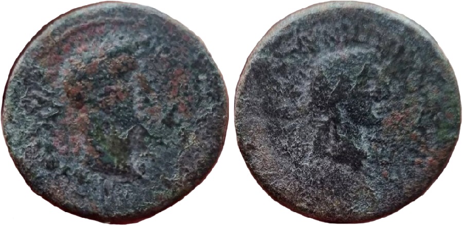 Номер по каталогам (1986 и 2011г.) В.А.Анохина дан справочно, так как монеты этого типа с такой разновидностью реверса (бюст Агриппины вправо) в его каталогах не отмечены.