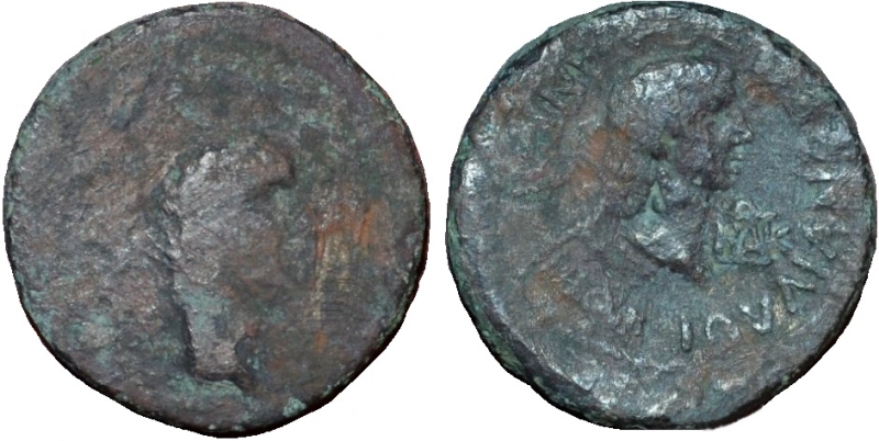 ΙΟΥΛΙΑΝ ΑΓΡΙΠΠΙΝΑΝ ΚΑΙCΑΡΟC .Бюст Агриппины вправо, справа монограмма BAK.