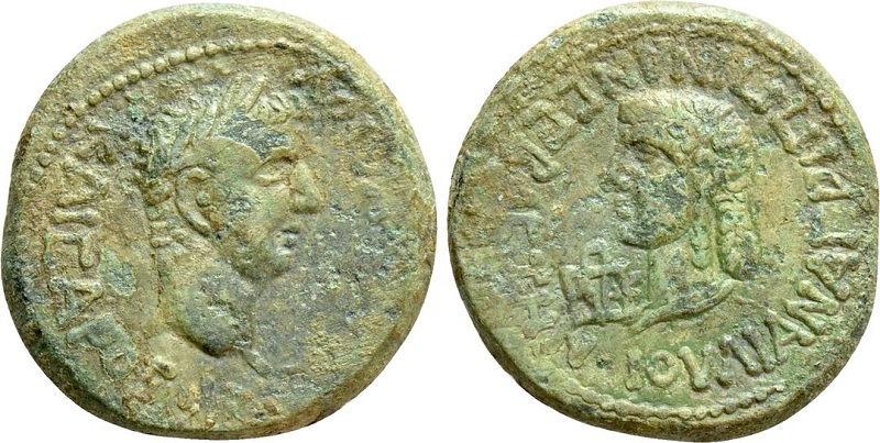 - ΙΟΥΛΙΑΝ ΑΓΡΙΠΠΙΝΑΝ CΕΒΑCΤΗΝ. Голова Агриппины влево, слева монограмма ΒΑΚ