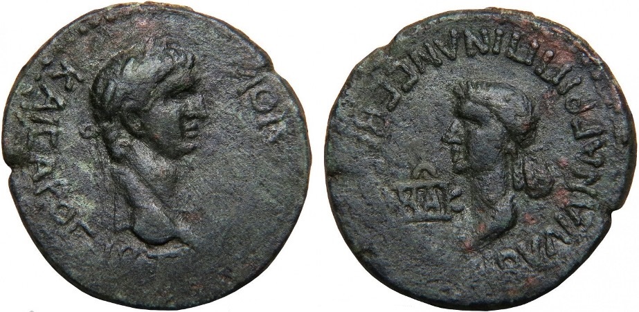 - ΤΙ ΚΛΑΥΔΙΟΥ ΚΑΙCΑΡΟC. Голова Клавдия вправо, внизу ΙΒ