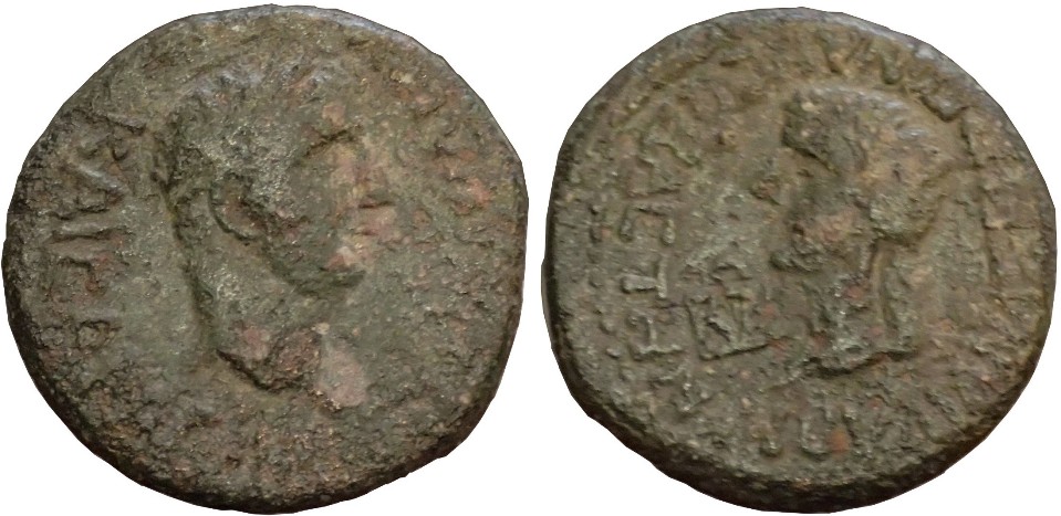- ΤΙ ΚΛΑΥΔΙΟΥ ΚΑΙCΑΡΟC. Голова Клавдия вправо, внизу ΙΒ