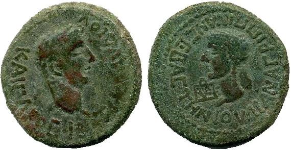 - ΤΙ ΚΛΑΥΔΙΟΥ ΚΑΙCΑΡΟC. Голова Клавдия вправо, внизу ΙΒ