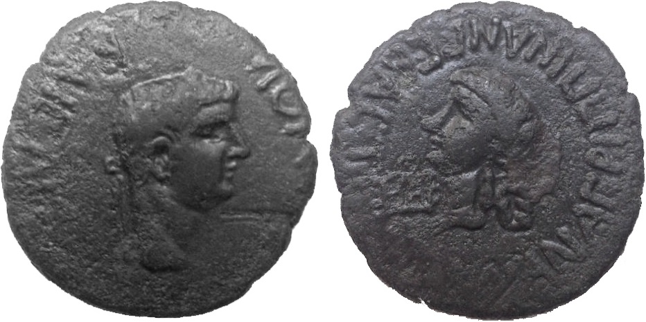 - ΙΟΥΛΙΑΝ ΑΓΡΙΠΠΙΝΑΝ CΕΒΑCΤΗΝ. Голова Агриппины влево, слева монограмма ΒΑΚ
