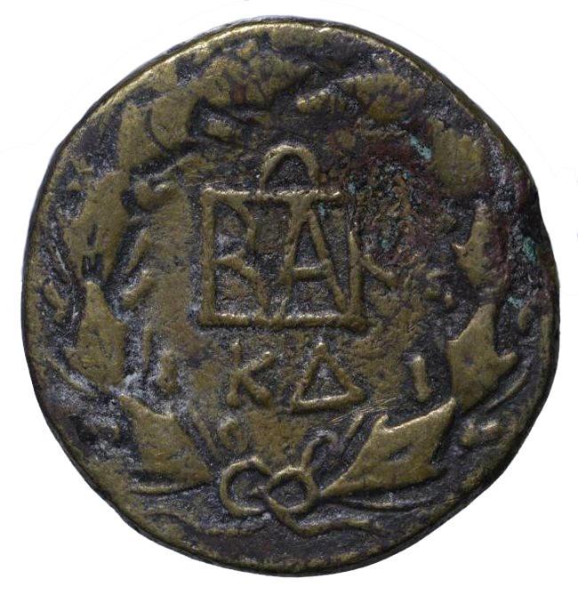Венок, в нем монограмма, ниже ΚΔ