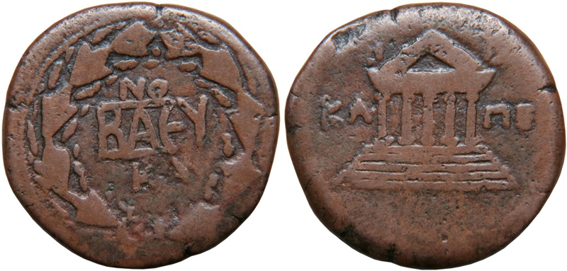 - Анохина В.А данную серию монет отнёс к началу чеканки Рискупорида I. Администрация сайта разделяет взгляды исследователей, отнёсших чеканку данного типа к времени правления Котиса I. - - - - - - - - - Мельников О.Н.: Евн[ика] Материал монеты: бронза
