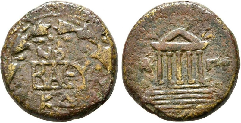 - Анохина В.А данную серию монет отнёс к началу чеканки Рискупорида I. Администрация сайта разделяет взгляды исследователей, отнёсших чеканку данного типа к времени правления Котиса I. - - - - - - - - - Мельников О.Н.: Евн[ика] Материал монеты: бронза