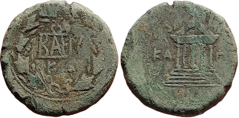 ГлавнаяКаталог монетПаспорт монеты Паспорт монеты: 372-4933-7 Дополнительная информация о монете Telegram messenger Группа Bosporan-Kingdom Номер:372-4933 Количество монет в архиве:6 монет Центр чеканки:Пантикапей Период чеканки: по Анохину В.А. (1986 г.)68 — 79 год н.э. по Анохину В.А. (2011 г.)69 — 79 год н.э. по Шелову Д.Б. по Фроловой Н.А.63 — 68 год н.э. по MacDonald D.68 — 69 год н.э. по Шонову И.В. Правитель, годы правления:Рискупорид I, 69-91/92 гг н.э. Материал монеты:Медь Номинал:Дупондий Вес монеты:0.00 Диаметр монеты:0.0 Описание аверса:Венок, в нем монограмма, ниже ΚΔ Описание реверса:ΚΑ−ΠΕ. Пятиколонный храм Номер по каталогу: Анохина В.А. (1986 г.)372 Анохина В.А. (2011 г.)1476 Шелова Д.Б. Фроловой Н.А.Т.I, таб. XXIX 19,20 MacDonald D.337/2 Шонова И.В. Архив монет данного типа 372-4933-2 Пантикапей. 68 — 79 год н.э. Медь Дупондий, вес 7.52 г, d27.0 мм 372-4933-3 Пантикапей. 68 — 79 год н.э. Медь Дупондий, вес 10.17 г, d25.0 мм 372-4933-4 Пантикапей. 68 — 79 год н.э. Медь Дупондий, вес 0.00 г, d0.0 мм 372-4933-5 Пантикапей. 68 — 79 год н.э. Медь Дупондий, вес 0.00 г, d23.5 мм 372-4933-6 Пантикапей. 68 — 79 год н.э. Медь Дупондий, вес 0.00 г, d0.0 мм 372-4933-7 Пантикапей. 68 — 79 год н.э. Медь Дупондий, вес 0.00 г, d0.0 мм
