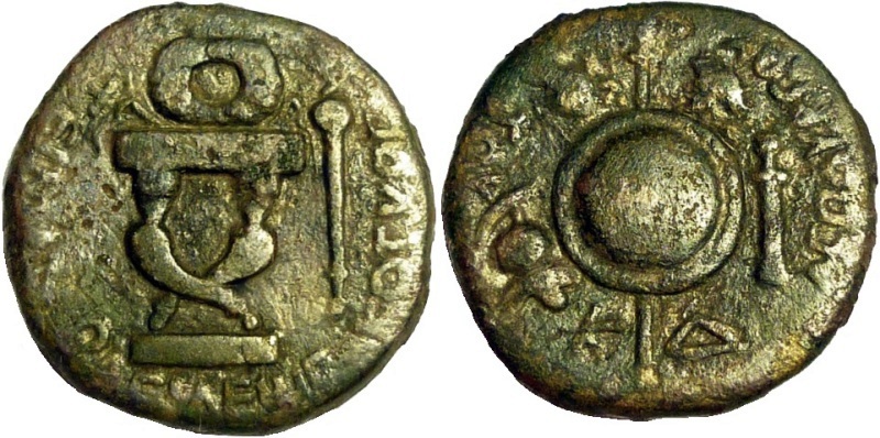 - ΤΕΙΜΑΙ ΒΑCΙΛΕωC ΚΟΤΥΟC . Курульное кресло с венком, справа скипетр с бюстом