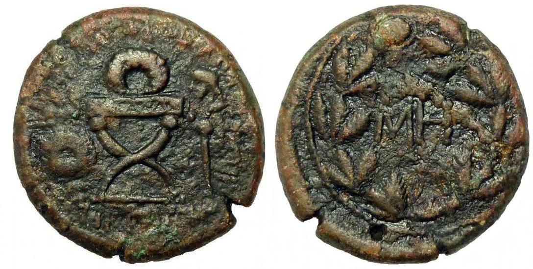 ГлавнаяКаталог монетПаспорт монеты Паспорт монеты: 377-5182-2 Дополнительная информация о монете Частная коллекция.Комментарий:Номер по каталогу Анохина В.А. (1986 г.) дан условно, т.к. на данном типе отсутствует изображение топора под креслом. Номер:377-5182 Количество монет в архиве:5 монет Центр чеканки:Пантикапей Период чеканки: по Анохину В.А. (1986 г.)86 — 92 год н.э. по Анохину В.А. (2011 г.) по Шелову Д.Б. по Фроловой Н.А. по MacDonald D. по Шонову И.В. Правитель, годы правления:Рискупорид I, 69-91/92 гг н.э. Материал монеты:Медь Номинал:Сестерций Вес монеты:14.20 Диаметр монеты:28.0 Описание аверса:ΤΙΒΕΡΙΟΥ ΙΟΥΛΙΟΥ ΒΑCΙΛΕΟC ΡΗCΚΟΥΠΟΡΙΔΟC. Курульное кресло с венком, щит, копье Описание реверса:Венок, в нем ΜΗ Номер по каталогу: Анохина В.А. (1986 г.)377 Анохина В.А. (2011 г.) Шелова Д.Б. Фроловой Н.А. MacDonald D. Шонова И.В. Архив монет данного типа 377-5182-4 Пантикапей. 86 — 92 год н.э. Медь Сестерций, вес 10.23 г, d27.0 мм 377-5182-1 Пантикапей. 86 — 92 год н.э. Медь Сестерций, вес 0.00 г, d0.0 мм 377-5182-2 Пантикапей. 86 — 92 год н.э. Медь Сестерций, вес 14.20 г, d28.0 мм 377-5182-3 Пантикапей. 86 — 92 год н.э. Медь Сестерций, вес 12.00 г, d25.0 мм 377-5182-5 Пантикапей. 86 — 92 год н.э. Медь Сестерций, вес 17.11 г, d0.0 мм