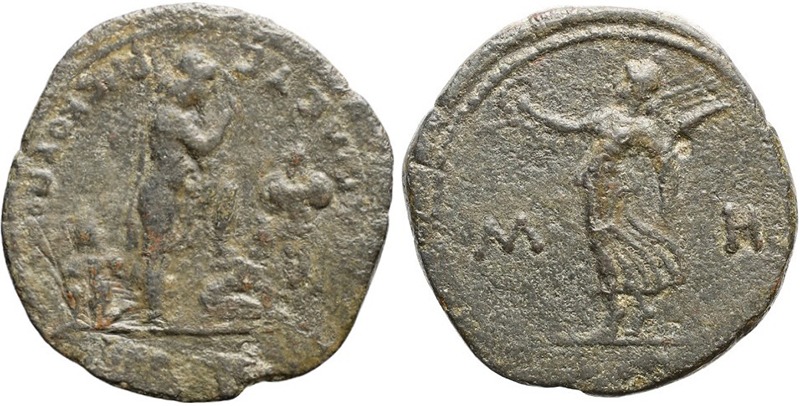 - Нике с венком в левой руке, влево. В правой руке - пальмовая ветвь, по сторонам - "МН"