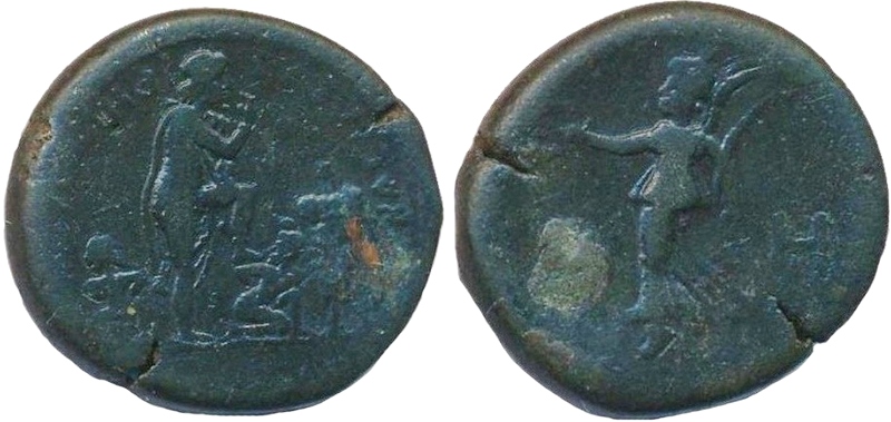 - Нике с венком в левой руке, влево. В правой руке - пальмовая ветвь, по сторонам - "МН"