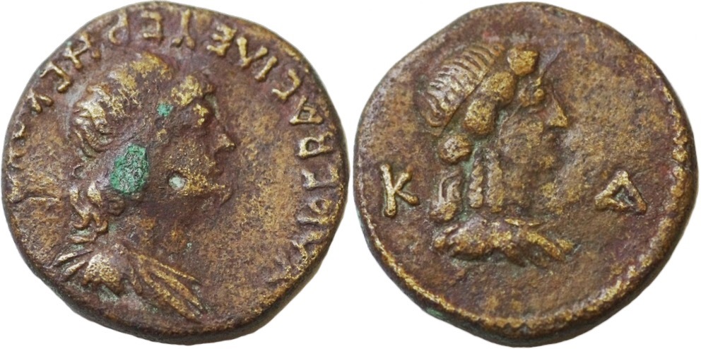 Бюст богини (царицы ?) вправо, по сторонам ΚΔ