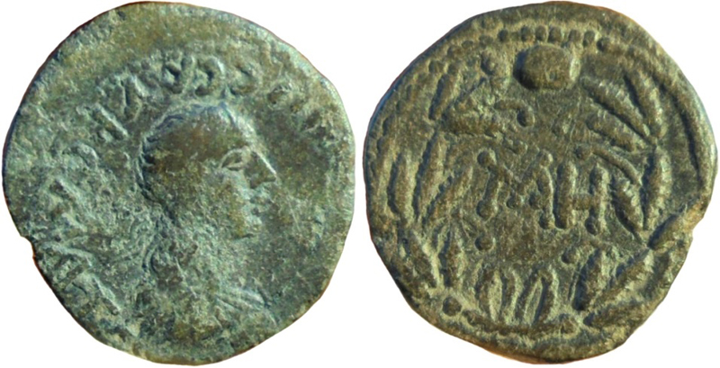 - ΒΑCΙΛΕωC CΑΥΡΟΜΑΤΟΥ. Бюст царя вправо