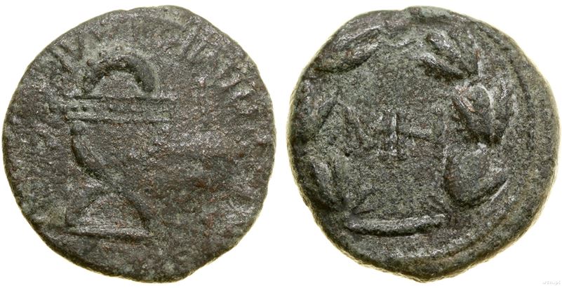- ΒΑCΙΛΕωC CΑΥΡΟΜΑΤΟΥ. Курульное кресло с венком, слева круглый щит и копье, справа скипетр с бюстом