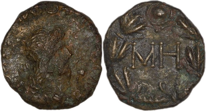 - ΒΑCΙΛΕωC ΡΟΙΜΗΤΑΛΚΟΥ. Бюст царя вправо, справа "трезубец"
