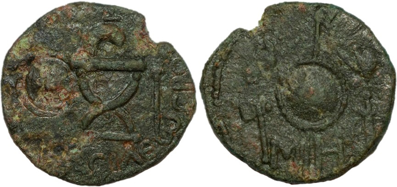 ГлавнаяКаталог монетПаспорт монеты Паспорт монеты: 528-4289-9 Дополнительная информация о монете auction.violity.com Номер:528-4289 Количество монет в архиве:13 монет Центр чеканки:Пантикапей Период чеканки: по Анохину В.А. (1986 г.)131 — 153 год н.э. по Анохину В.А. (2011 г.) по Шелову Д.Б. по Фроловой Н.А. по MacDonald D. по Шонову И.В. Правитель, годы правления:Реметалк, 131/132-153/154 н.э. Материал монеты:Медь Номинал:Сестерций Вес монеты:7.30 Диаметр монеты:0.0 Описание аверса:ΒΑCΙΛΕωC ΡΟΙΜΗΤΑΛΚΟΥ. Курульное кресло с венком, слева круглый щит и копье, справа скипетр с бюстом. В верхней и нижней части кресла по «точке». Описание реверса:Круглый щит и копье, слева голова коня и топор, справа шлем и меч, внизу ΜΗ. Номер по каталогу: Анохина В.А. (1986 г.)528 Анохина В.А. (2011 г.) Шелова Д.Б. Фроловой Н.А. MacDonald D. Шонова И.В. Архив монет данного типа 528-4289-3 Пантикапей. 131 — 153 год н.э. Медь Сестерций, вес 10.58 г, d25.0 мм 528-4289-1 Пантикапей. 131 — 153 год н.э. Медь Сестерций, вес 8.21 г, d24.0 мм 528-4289-2 Пантикапей. 131 — 153 год н.э. Медь Сестерций, вес 8.45 г, d0.0 мм 528-4289-4 Пантикапей. 131 — 153 год н.э. Медь Сестерций, вес 0.00 г, d0.0 мм 528-4289-5 Пантикапей. 131 — 153 год н.э. Медь Сестерций, вес 7.47 г, d26.0 мм 528-4289-6 Пантикапей. 131 — 153 год н.э. Медь Сестерций, вес 0.00 г, d0.0 мм 528-4289-7 Пантикапей. 131 — 153 год н.э. Медь Сестерций, вес 0.00 г, d0.0 мм 528-4289-8 Пантикапей. 131 — 153 год н.э. Медь Сестерций, вес 8.22 г, d25.0 мм 528-4289-9 Пантикапей. 131 — 153 год н.э. Медь Сестерций, вес 7.30 г, d0.0 мм 528-4289-10 Пантикапей. 131 — 153 год н.э. Медь Сестерций, вес 10.87 г, d26.0 мм 528-4289-11 Пантикапей. 131 — 153 год н.э. Медь Сестерций, вес 10.02 г, d0.0 мм 528-4289-12 Пантикапей. 131 — 153 год н.э. Медь Сестерций, вес 6.71 г, d25.5 мм 528-4289-13 Пантикапей. 131 — 153 год н.э. Медь Сестерций, вес 14.53 г, d0.0 мм