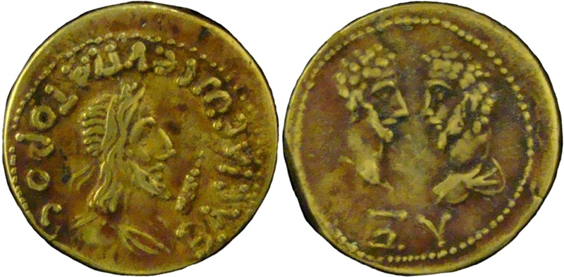 Бюсты Марка Аврелия и Луция Вера, год ΞΥ (460 г. б.э.), между ними "точка"