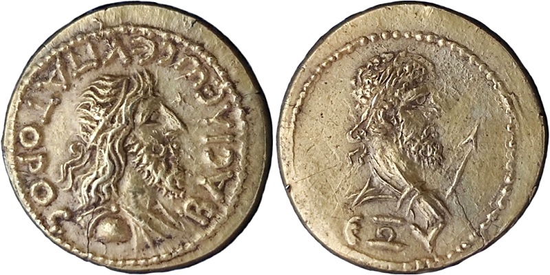 Бюст Марка Аврелия вправо, год ΕΞΥ (465 г. б. э.), «копье».