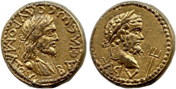 Бюст Септимия Севера вправо, год ΑqΥ (491 г. б.э.), справа «трезубец»
