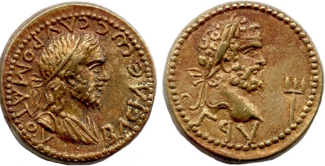 Бюст Септимия Севера вправо, год ΓqΥ (493 г. б. э.), справа трезубец