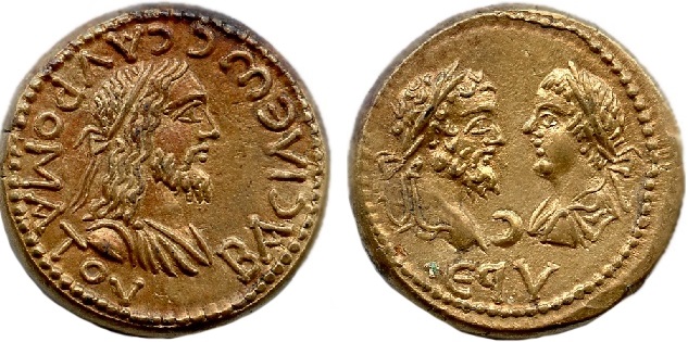 Бюсты Септимия Севера и Каракаллы, год ΕqΥ (495 г. б.э.), между ними "полумесяц"