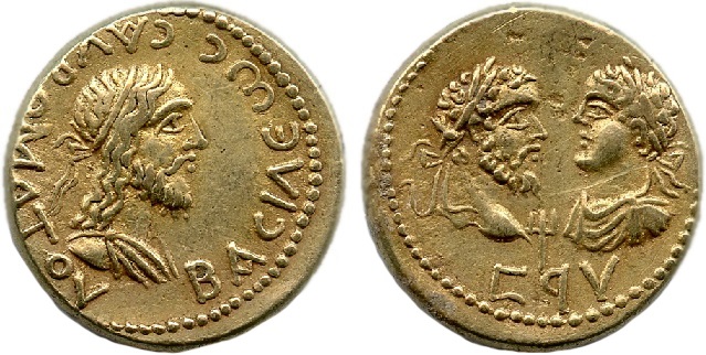 Бюсты Септимия Севера и Каракаллы, между ними «трезубец», год ςqΥ (496 г. б. э.).