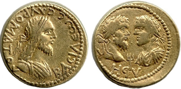 Бюсты Септимия Севера и Каракаллы, между ними "трезубец", год ΗqΥ (498 г. б. э.)