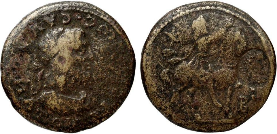 - ΒΑCΙΛΕωC CΑΥΡΟΜΑΤΟΥ. Легенда против часовой стрелки. Бюст царя в повязке вправо.