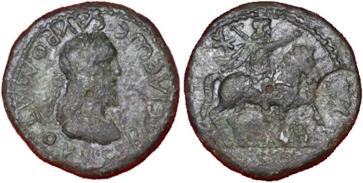 - ΒΑCΙΛΕωC CΑΥΡΟΜΑΤΟΥ. Легенда против часовой стрелки. Бюст царя в повязке вправо.