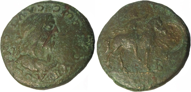 - ΒΑCΙΛΕωC CΑΥΡΟΜΑΤΟΥ. Легенда против часовой стрелки. Бюст царя в повязке вправо.