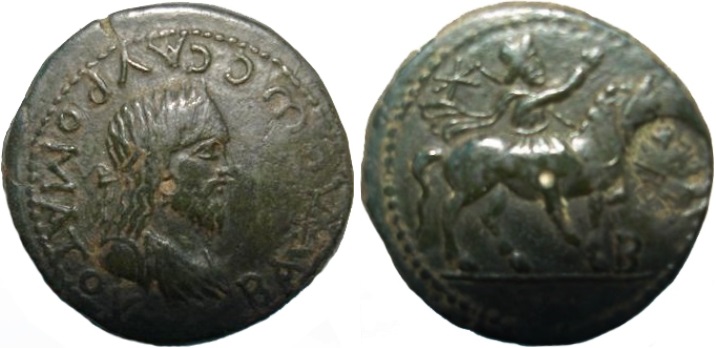 - ΒΑCΙΛΕωC CΑΥΡΟΜΑΤΟΥ. Легенда против часовой стрелки. Бюст царя в повязке вправо.